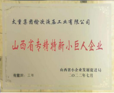 9月23日,太重榆液公司参加了由山西省小企业发展促进局主办,晋中市转型综改促进中心协办的晋中市“专精特新”中小企业高质量发展推进会暨专精特新“小巨人”企业的授牌仪式。会上,太重榆液公司被授予山西省专精特新“小巨人”企业称号。