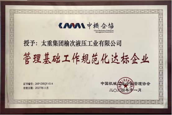 是鞭策,是鼓励,更是动力。太重榆液将以获评“管理基础工作规范化达标企业”为新起点,进一步巩固和深化管理基础工作规范化建设成果,不断提升管理水平和核心竞争力,努力实现更高质量的发展。