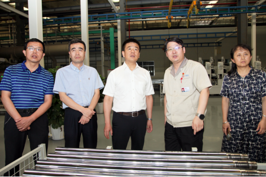 7月9日上午,晋中市党组成员、副市长王帮富深入太重榆液液压油缸分公司生产一线就项目建设推进情况开展调研,公司党委书记、总经理张作鹏陪同调研。